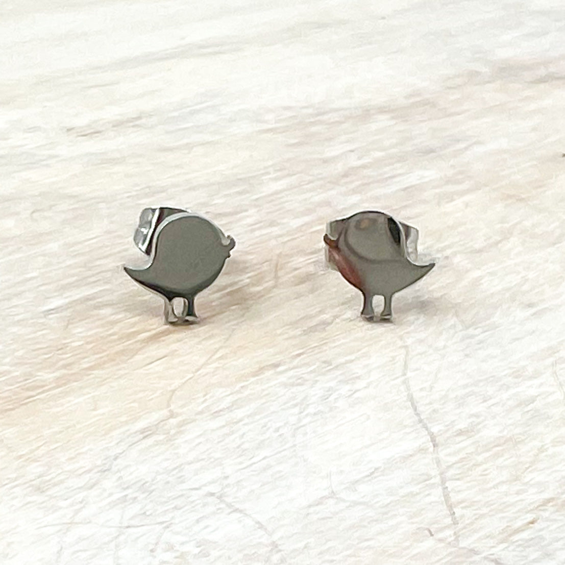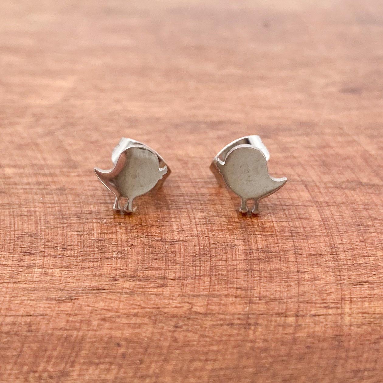 304 Stainless Steel Ear Post Stud Earrings Silver Tone Chicken 8mm x 7mm, Post/ Wire Size: (21 gauge), 1 Pair