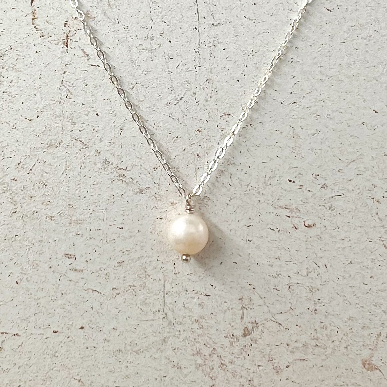 Small Dainty Single drop Pearl Pendant Sterling Silver Necklace Perfect for Layering