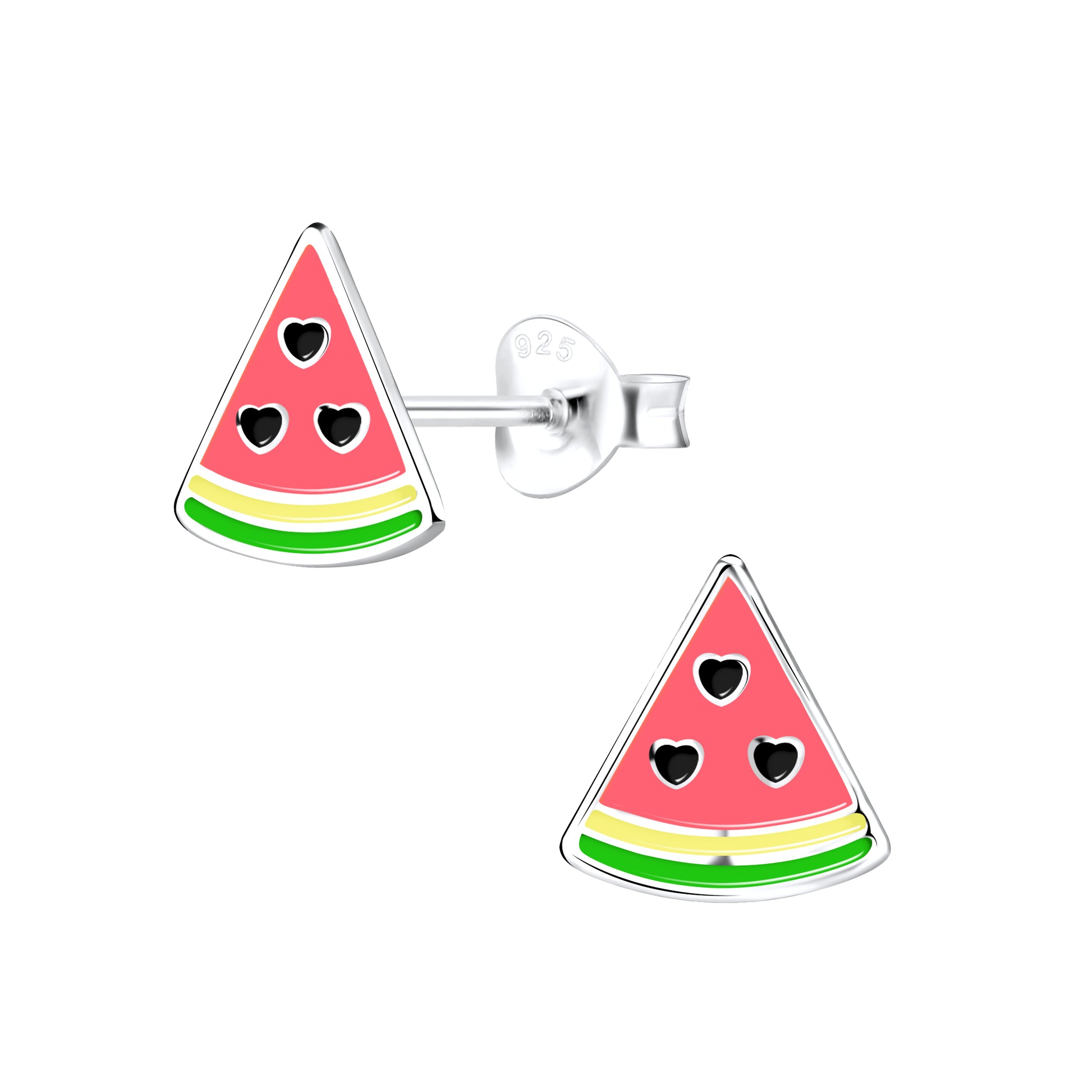 Sterling Silver Watermelon Slice Valentine Stud Earrings