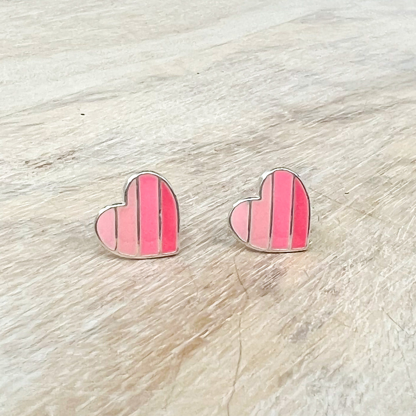 Striped Pink Heart Sterling Earrings