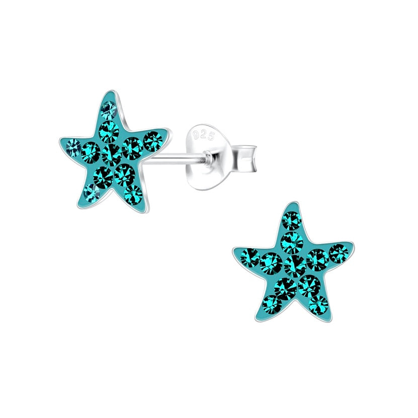 Teal Rhinestone Starfish Sterling Silver Stud Earrings