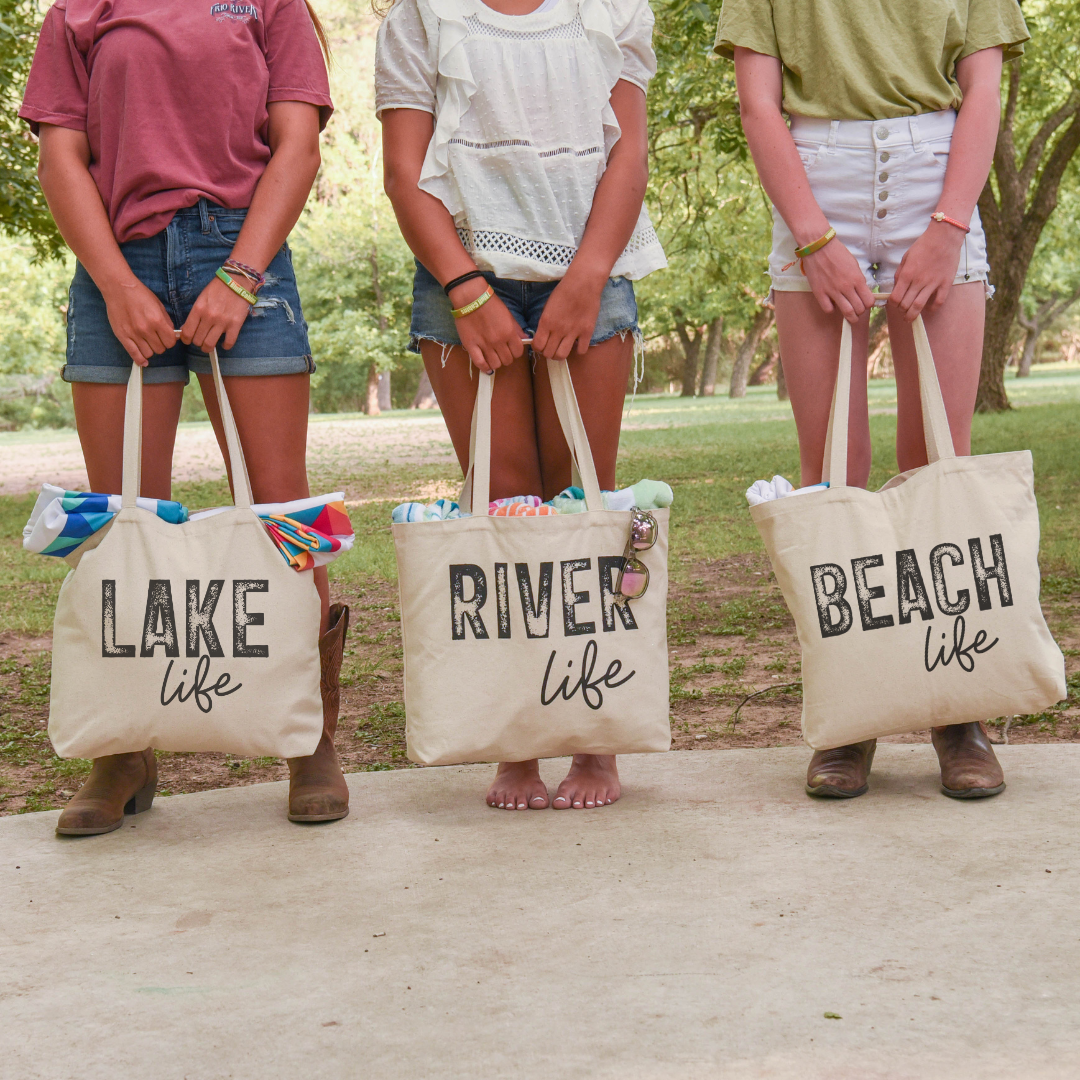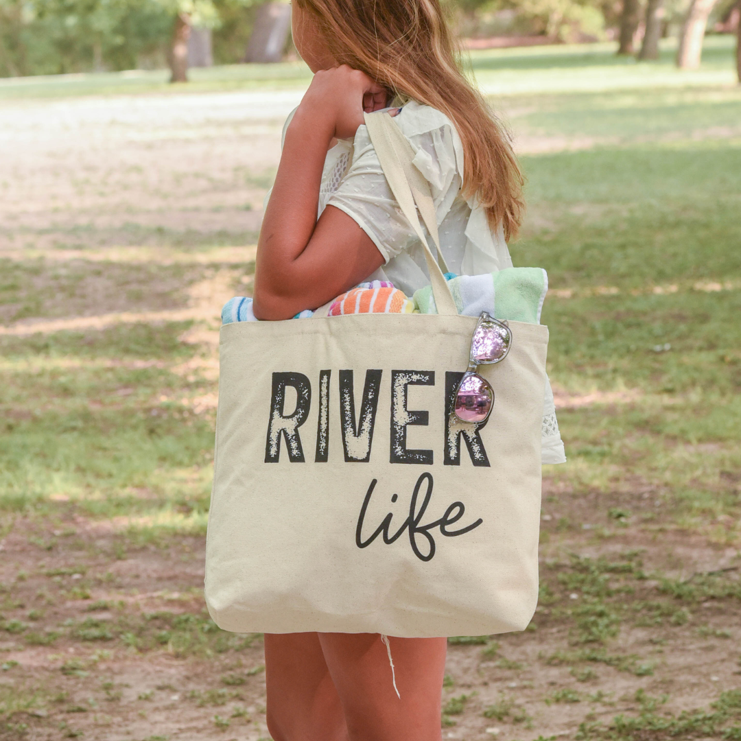 Calling all Water Lovers!  These durable totebags are perfect for all your outdoor activities - from the beach, to the lake, and to the River!